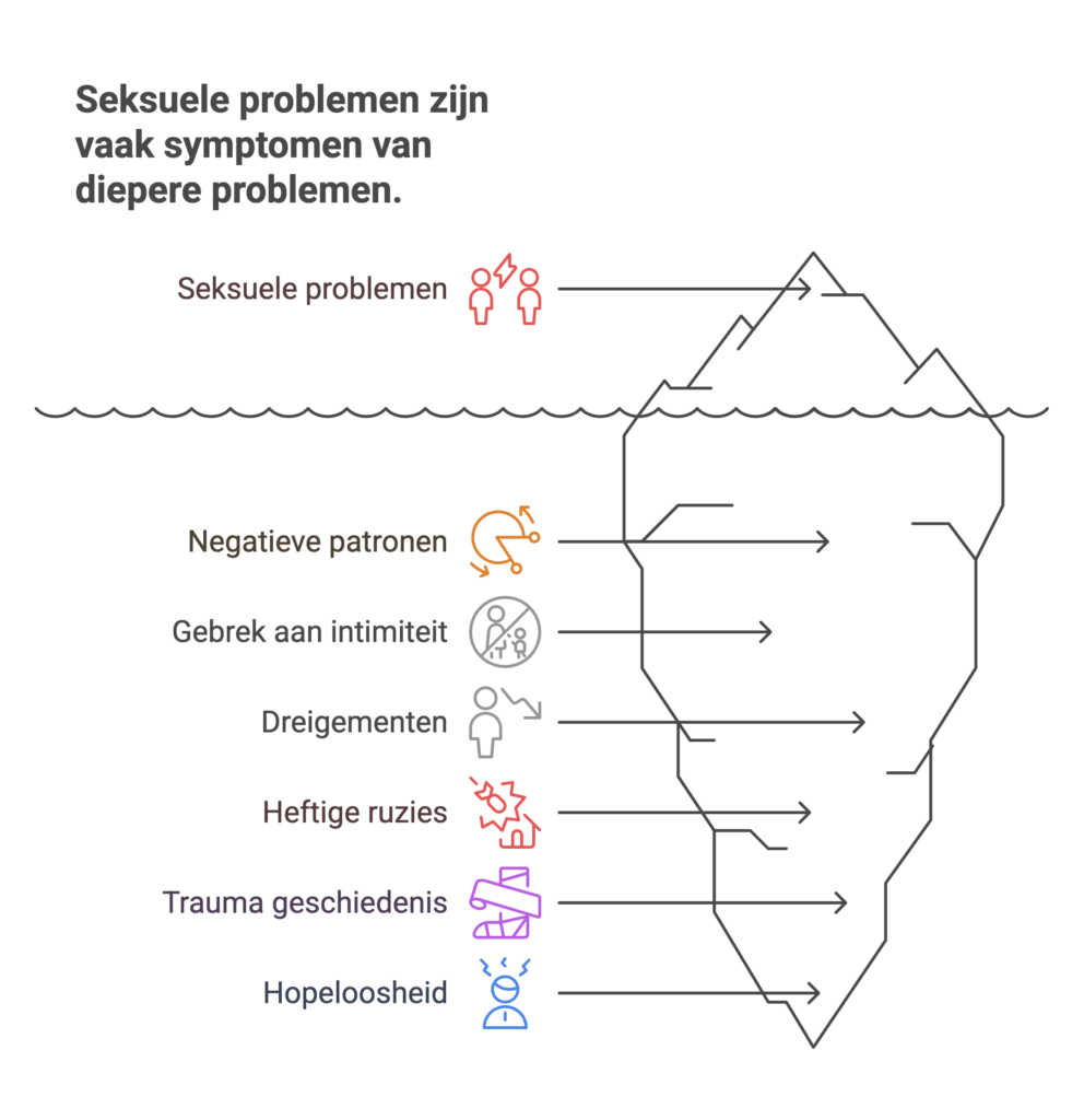 Een goede therapeut zal jullie helpen om niet alleen de seksuele problemen aan te pakken, maar ook de emotionele dynamiek die eraan ten grondslag ligt. Vaak ontdekken koppels dat hun problemen in de slaapkamer symptomen zijn van dieperliggende onvervulde behoeften aan veiligheid en verbinding.